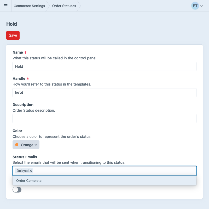 Once you choose Save, the designated emails will be sent when an order is assigned that status.